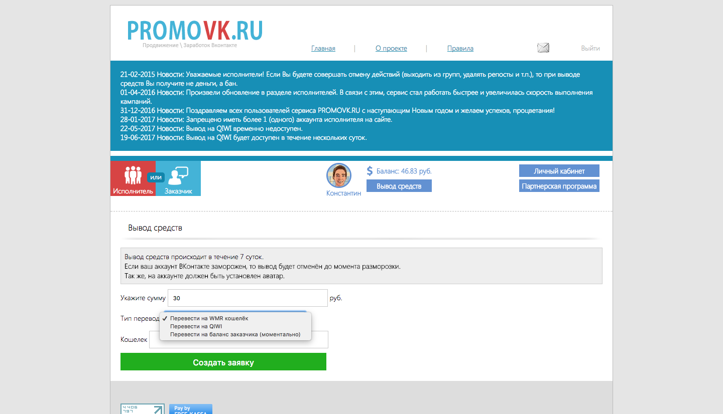 PromoVK – удобный и эффективный инструмент для проведения рекламных кампаний в социальной сети Вконтакте. Цель проекта состоит в том, чтобы создать максимально взаимовыгодные условия для заказчика и исполнителя, тем самым дать возможность исполнителям зарабатывать, а заказчикам иметь качественную рекламу по лояльным ценам.